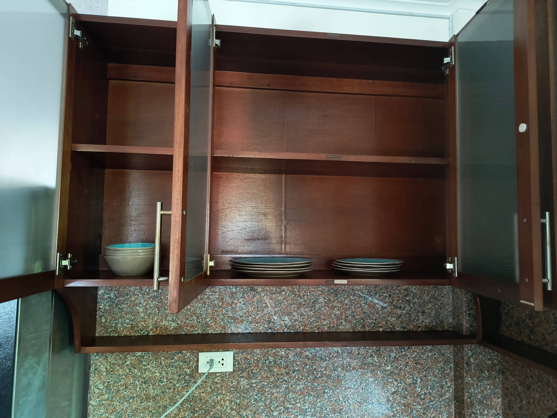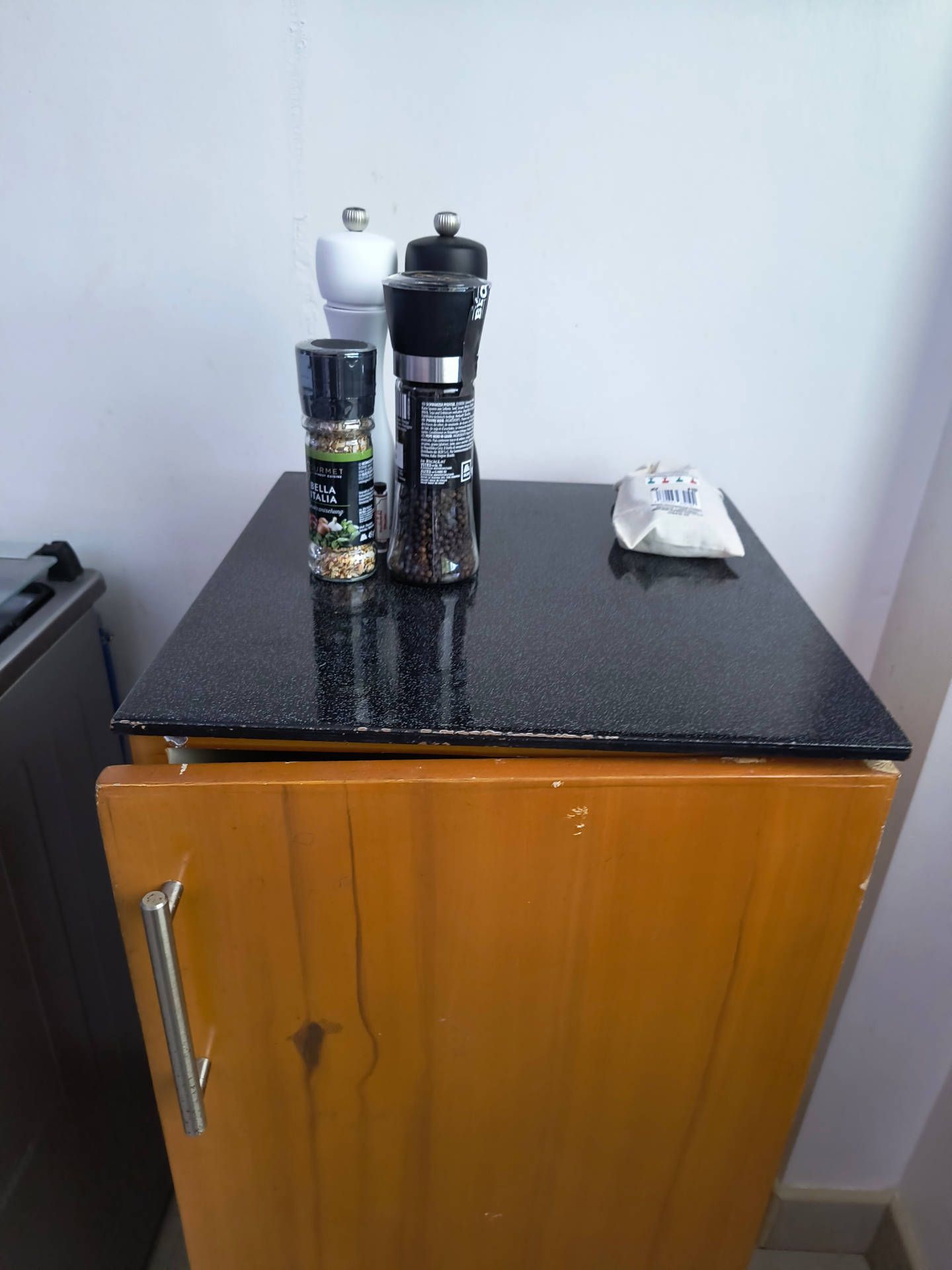 Im Moment ist es noch sehr spärlich möbliert, aber es hat immerhin ein Bett in dem wir schlafen und einen Tisch an dem wir essen können.