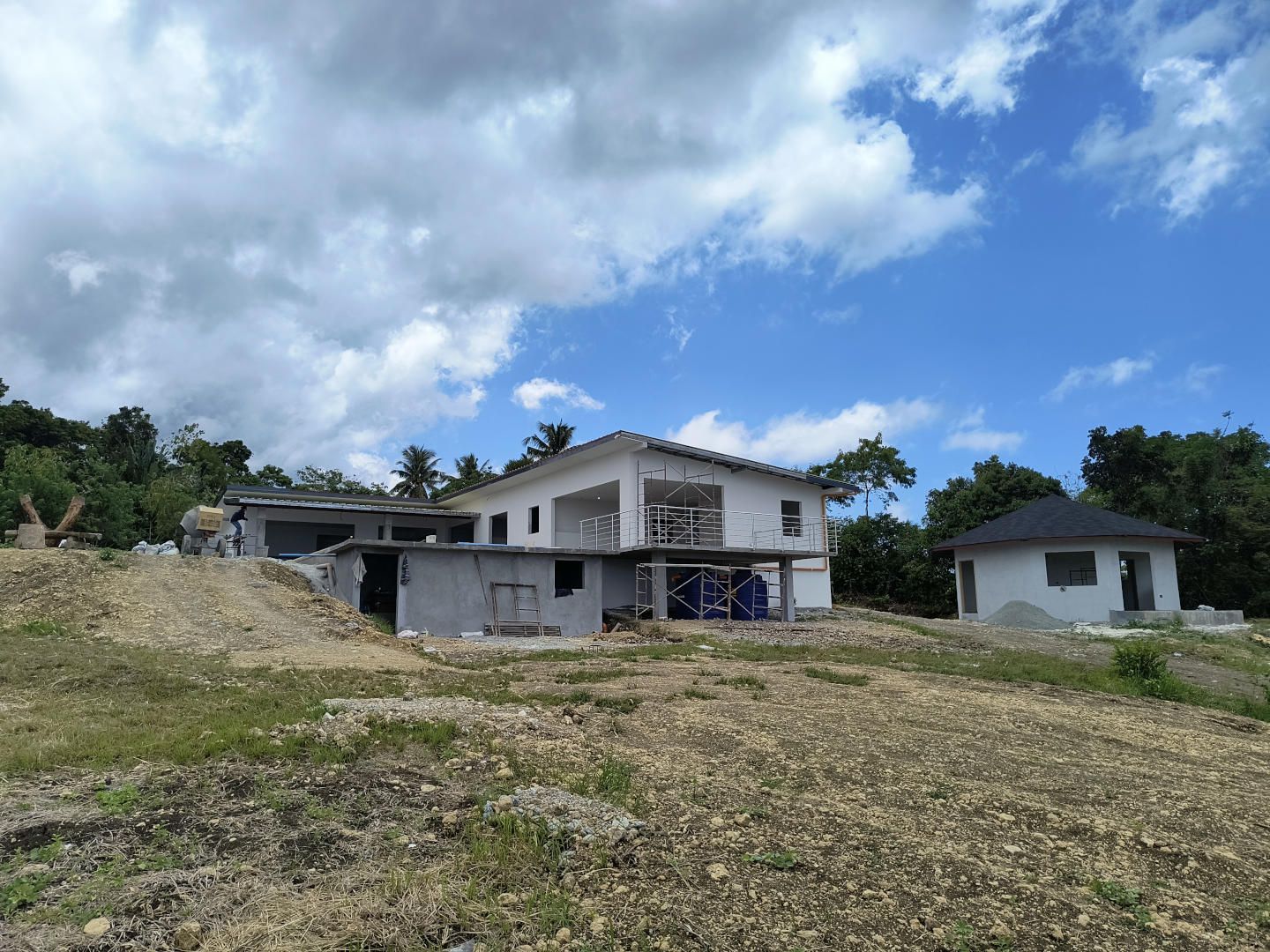 Der Rohbau unseres Hauses ist abgeschlossen. Jetzt beginnen die Arbeiten im Inneren des Hauses und es wird weiter am Pool gearbeitet.