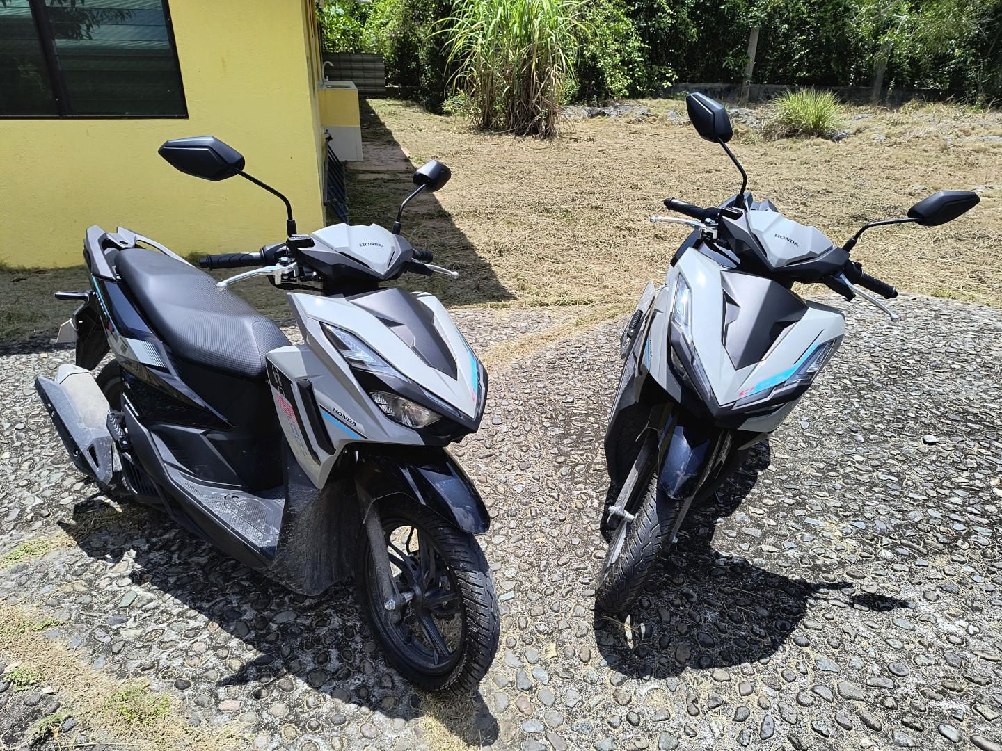 Da wir für kurze Strecken, oder kleinere Einkäufe, gerne auf das Auto verzichten, haben wir uns zwei Honda 125 Click angeschafft. Bei schönem Wetter fahren wir sehr gerne mit diesen Motorrädern, die wir schon aus unseren Ferien kennen, während denen wir uns immer zwei Stück gemietet hatten.